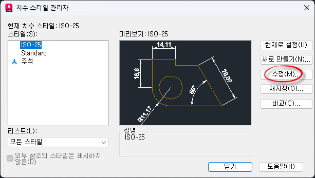 [그림1] 창이 나타나면 [수정]버튼을 클릭한다.