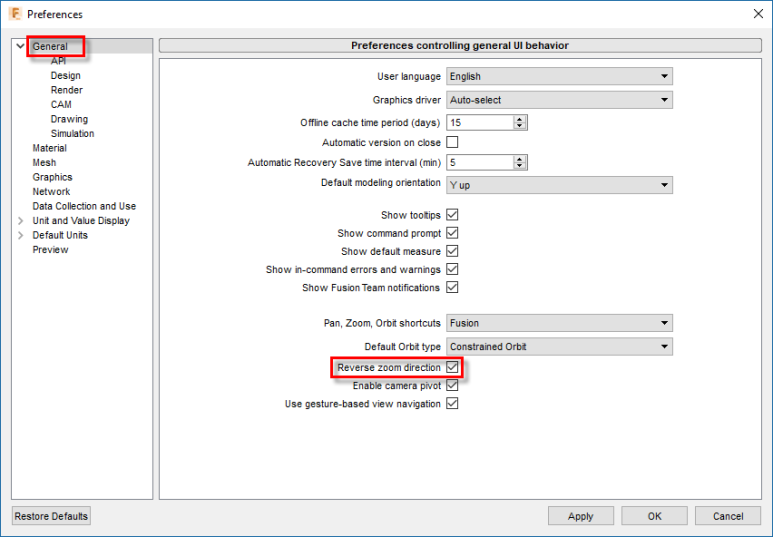 3. 'Reverse zoom direction' 을 체크하면 Zoom in / out 할 때 휠 방향을 변경시킬 수 있다.